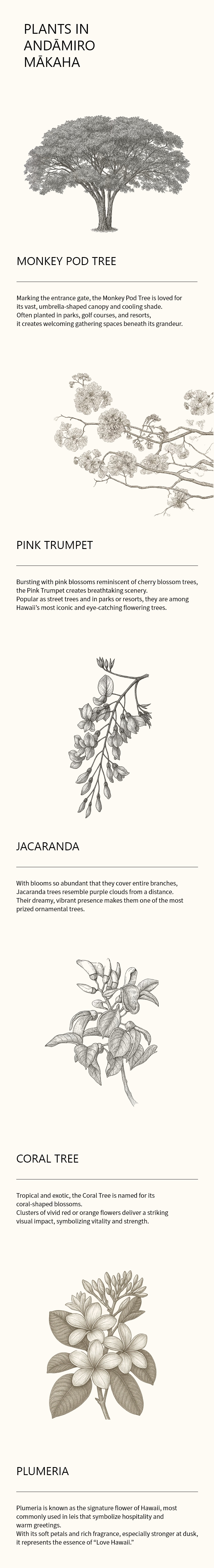 Hawaii, often referred to as the “island of the gods,” owes its name not only to its majestic landscapes but also to its enchanting flora. ANDAMIRO MAKAHA embraces this spirit, offering a village atmosphere worthy of being called a true Garden of the Gods.