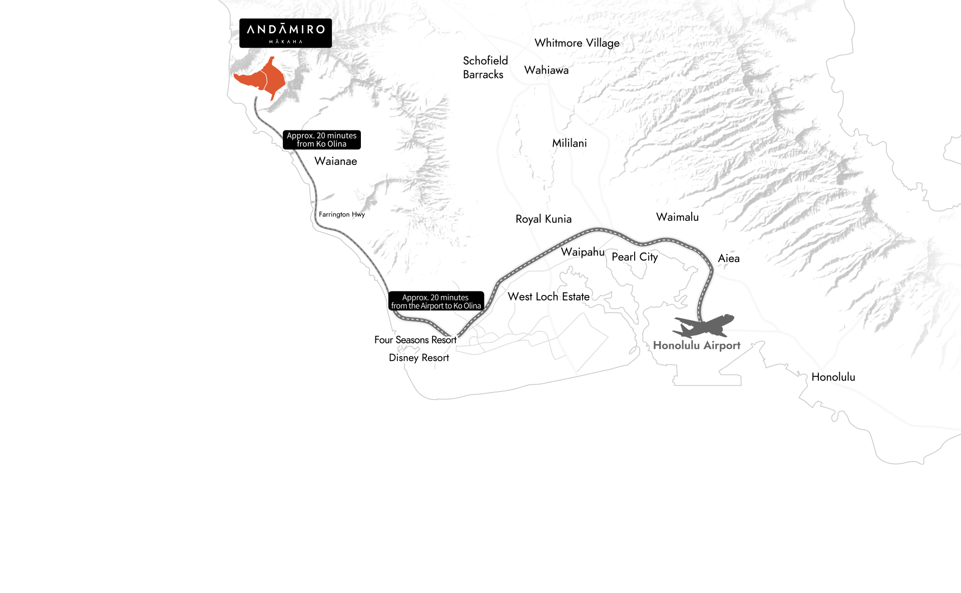 From Honolulu International Airport, Hawaii’s gateway, it takes only about 40 minutes by car. Driving along the Farrington Highway coastal road with its sweeping views of the Pacific Ocean, you arrive at a truly special destination within O‘ahu, the Makaha Valley. Here, you can enjoy Honolulu’s culture, art, and shopping infrastructure nearby, while escaping the crowds and the fatigue of city life. Makaha Valley, home to ANDAMIRO MAKAHA, is the ultimate retreat shaped by the island’s pristine and ancient nature.
